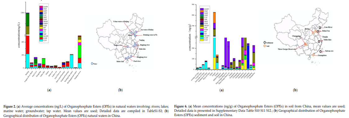 有机磷酸酯Organophosphate esters (OPEs) 被广泛用作阻燃剂和增塑剂,它们在使用过程中不可避免地被释放到各种环境介质中。本文综述了OPEs在我国各种环境中的赋存和分布情况。研究表明不同环境介质之间的有机磷酸酯的浓度差异很大。除了水体、沉积物、土壤外,空气和生物体内也检测到了OPEs的存在。平均来看,中国水体、沉积物、粉尘和空气中的OPEs水平处于较低水平,但部分特殊环境下,例如电子废物车间的灰尘受到有机磷酸酯的污染较为严重。人类通过皮肤接触、呼吸和饮食等方式暴露在有机磷酸酯的环境中。OPEs需要规范建立统一的标准来对其进行更好研究和调查,反映不同微环境中的污染水平及对人类健康(尤其是儿童)的潜在影响。本文还展望了有机磷酸酯未来的研究挑战和前景。该工作属于湖南省大学生创新创业训练计划项目(No.S2021105360034)的组成部分