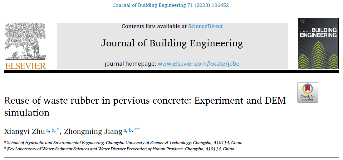近日,我院朱祥意博士的最新科研成果“废橡胶在透水混凝土中的再利用”发表在混凝土领域权威期刊《Journal of Building Engineering》(SCI源刊,JCR分区:Q1,IF= 7.144),永利集团88304官网水利与环境工程学院为唯一单位。