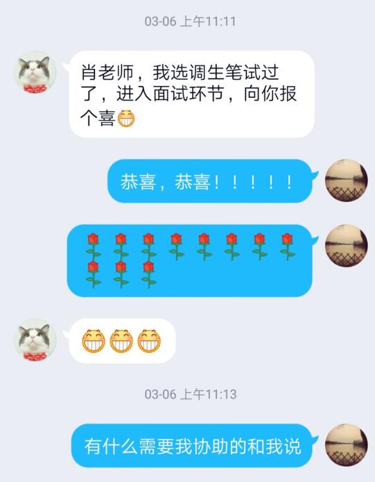 “肖老师,我选调生笔试过了,进入面试环节,向您报个喜......”这是就业辅导员肖苹宁老师收到的又一个好消息,也是她在疫情期间酝酿出的又一成果。