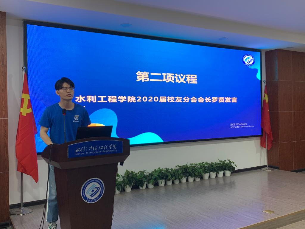 会上,水利工程学院2020届校友分会会长罗贤表达了他对母校和学院的感激之情,同时表示一定会认真履行好自己会长的职责,带领大家一起做好2020届校友分会的工作。