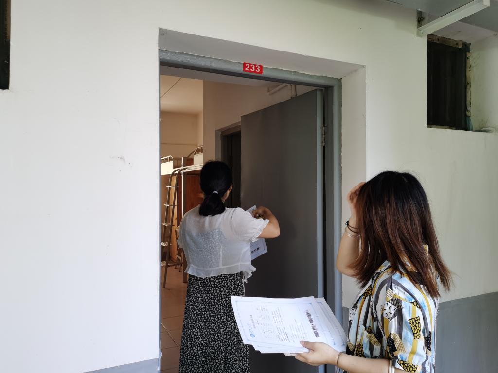 2020年9月2日上午,院研会成员在金盆岭办公大楼集合。此次行动主要任务是对新生宿舍进行卫生打扫、安全检查、贴门牌信息以及整理入学资料袋等。研会成员对此十分重视,成员之间分工明确、相互配合将各个宿舍认真整理、仔细检查并多次核实新生住宿信息,并对入学资料袋进行了装袋、清点。