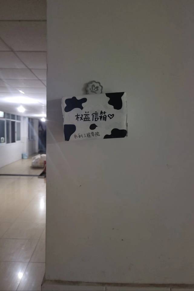水利工程学院权益信箱由权益部制作设于西苑九栋五楼楼梯口及西苑十栋九楼楼梯口处,权益部每月进行开箱收集,并且将收集到的问题整理分类,根据问题的性质和类别,第一时间与有关部门和老师取得联系,进行沟通、解决。