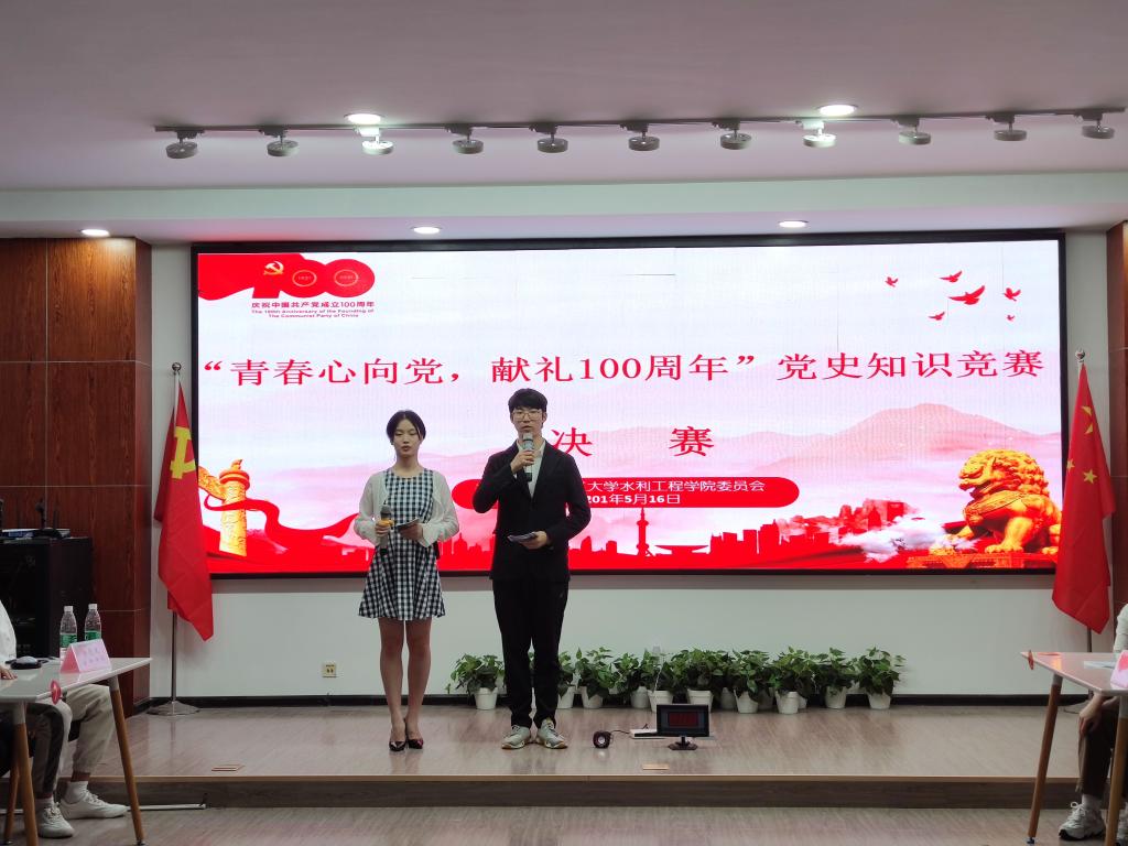 为了庆祝中国共产党成立100周年,增进学生对于党史的学习和了解,5月16日下午19:00,水利工程学院在工三B319举行“青春心向党·献礼100周年”党史知识竞赛决赛,水利工程学院团委书记杜丘、学生辅导员綦丽、黄远发、甯子豪参与本次比赛评委。