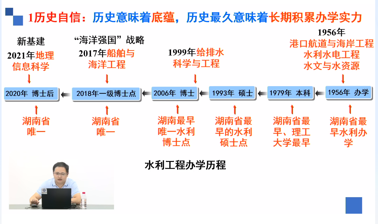 首先,陈杰代表学院全体师生欢迎各位家长参会,他简要的介绍了学院专业设置和2021级新生基本情况,从十个方面讲述了作为水利人必须具备的“自信”,带领家长对水利学院的历史、发展、成绩有了大致的了解。从专业特点、竞赛平台、考研就业等方面,通过图表和相近的数据,深入浅出地解读了各专业所涉足的领域以及毕业去向,让家长提前了解到孩子今后的发展路径。同时,他鼓励新生积极参与学科竞赛和校园活动,多尝试新鲜事物,培养不同兴趣爱好,找到自己施展青春风采的舞台。