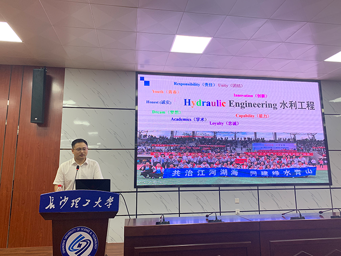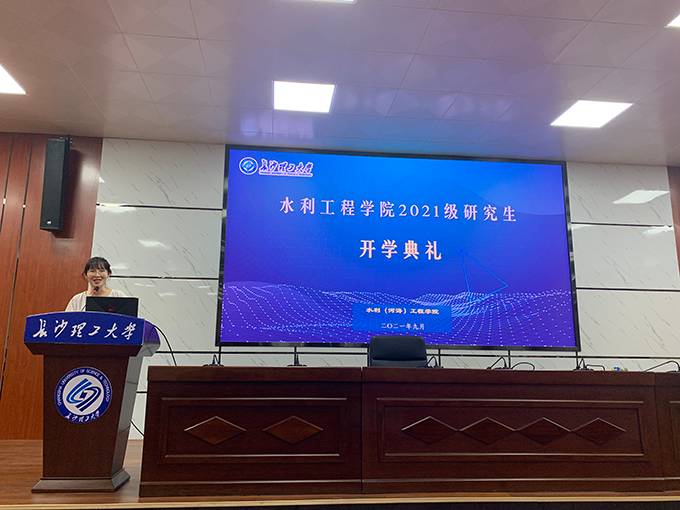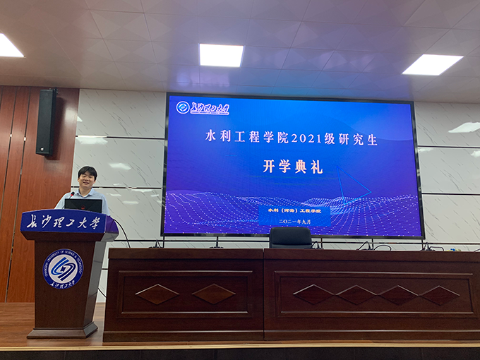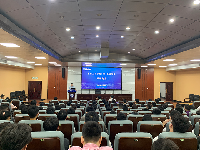 9月8日下午6:30,水利学院2021级研究生开学典礼暨院长第一课在金盆岭校区4号教学楼报告厅举行。水利学院院长陈杰、党委副书记银波、副院长李毅、研究生辅导员杜丘出席本次会议,2021级全体研究生参加。会议由杜丘主持。