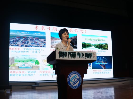 在暑期分享中,水利类20-5班朱嘉艺同学、给排水20-1班罗双雪同学、给排水20-3班张诗琪以及水电特岗20-1班谭茜同学分别从暑期“三下乡”社会实践、留校科研经历、防疫志愿服务经历和暑期跟岗实习进行了分享。朱嘉艺所在团队实地调研了韶山灌区的工程运行现状,深入基层走访调研,利用专业知识为韶山灌区“十四五”新时代征程献计献策,在一次次奔赴中收获成长。罗双雪分享到“科研并没有那么遥不可及,只要感兴趣,勇于尝试,积极思考,机会总是留有准备的人。”张诗琪在参与家乡抗疫志愿服务中深刻体会到“以生命赴使命,以挚爱护苍生”。谭茜则表示经过第一次跟岗实习,在学习实践中了解行业规范,收获本领,培养职业兴趣,水利特岗生也更加期待着能在基层水利岗位上发光发热。