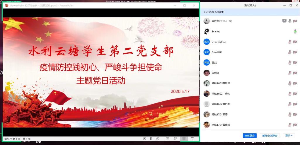 5月17日,为进一步发挥基层党组织战斗堡垒作用和党员先锋模范作用,根据学校党委组织部相关工作安排,水利工程学院各学生党支部开展了“疫情防控践初心 严峻斗争担使命”主题党日活动。各支部书记及学生党员参加活动。