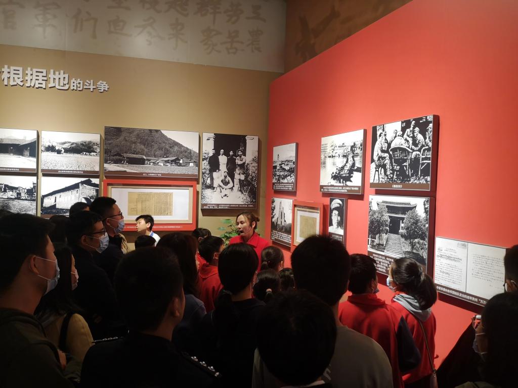 跟随着讲解员的脚步,同学们认真地在湖南党史陈列馆参观学习。陈列馆共有“开辟新天地”“描绘新画卷”“谱写新篇章”“三湘群英谱”四个篇章,全面系统地展现了党在湖南领导人民进行革命、建设和改革所取得的辉煌成就和宝贵经验。一段段珍贵的文字,一幅幅泛黄的老照片,一件件承载了历史记忆的文物,立体、生动、形象地展示了中国共产党在湖南波澜壮阔而又绚丽多彩的光辉历史。大家一路听、一路走、一路看,在党史熏陶和震撼中感受着精神洗礼,自发地在陈列馆进行了红歌传唱活动。