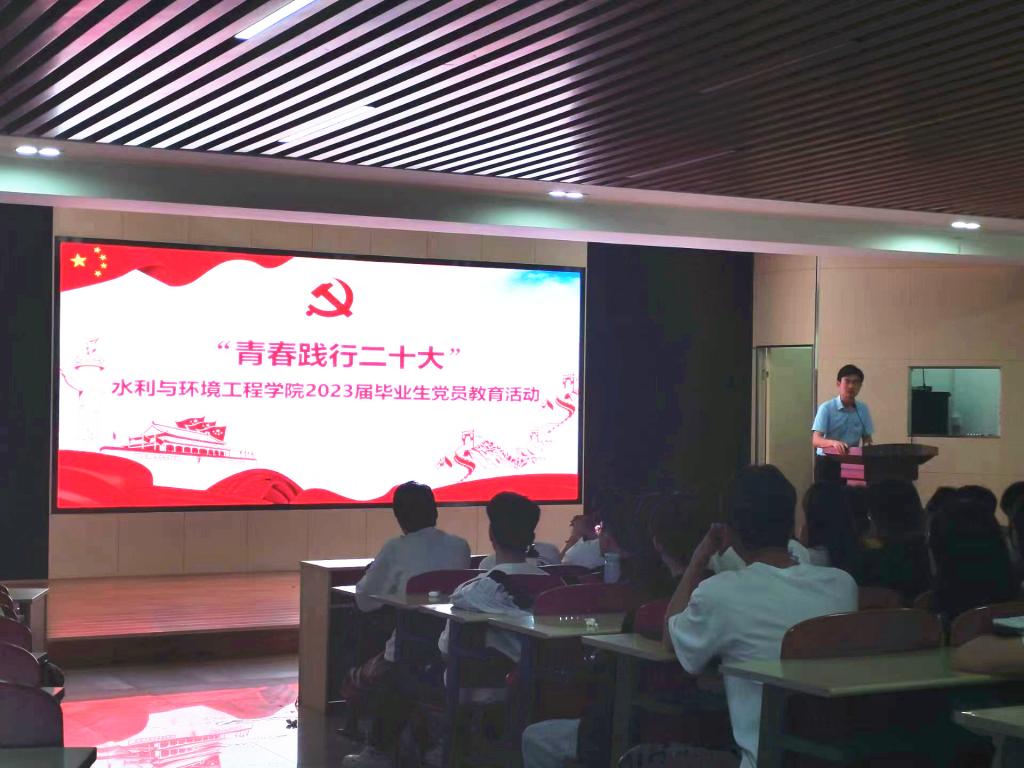 6月7日下午,水利与环境工程学院在工三A201举办以“青春践行二十大”为主题的2023届毕业生党员教育活动,院党委副书记银波、党建辅导员陈鑫林、毕业生辅导员甯子豪及全体毕业生党员参加活动。