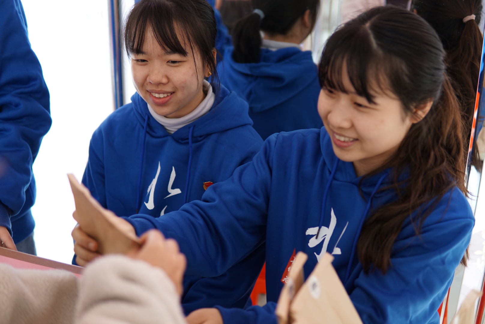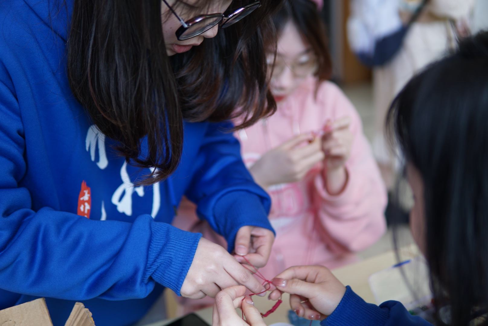 本次活动分线上线下两部分同时进行。线上心愿歌单通过电话形式为女孩实现心愿歌曲,歌声搭建起彼此友谊的桥梁。三个线下活动之一的“礼物相予”活动收集来自学院同学对女孩子最真挚的祝福和最具诚意的礼物,心意的交换和拆盲盒般的期待让这个活动更动人心;时光会走远,但影像长存,“美好定格”活动中相机聚焦女孩的笑脸,为她们定格美好时分;“手环DIY”活动如火如荼,凝聚着女孩们劳动和期盼的手环愈发富有意义。