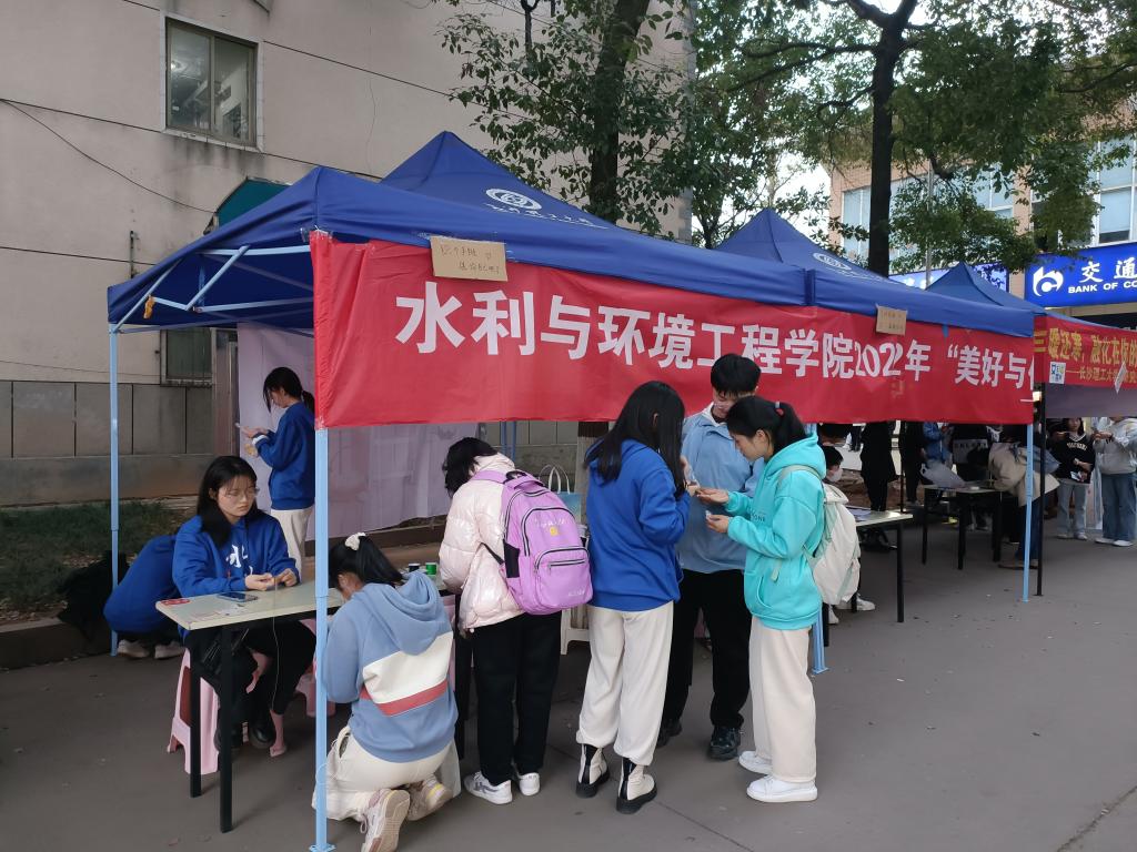 3月7日,水利与环境工程学院在金盆岭校区西苑食堂对面以及云塘校区行健轩1栋寝室楼下举办了“美好与你环环相扣”女生节主题活动。