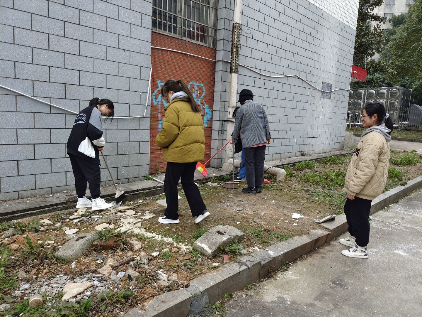 2022年2月26日下午,水利与环境工程学院勤助部在金盆岭校区西苑11栋公寓处开展了第一周的劳动实践活动,参与本次活动的人员包括勤助部干事及水利2102班全体学生。