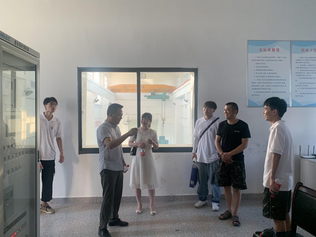 实践团首先前往华容县城区排涝泵站。在曾站长的讲解下,实践团了解到华容县城区排涝泵站是华容县城区排水系统重要节点,担负着城区渍水外排任务,近年来城区排涝泵站进行了改扩建,实现了排涝泵站的自动化、智能化,有效提升城区排涝能力。为深入了解泵站的运行情况,实践团在曹站长的带领下参观了排涝泵站的进水建筑物、泵房、出水建筑物和管理用房,加深了对水利工程的认识。