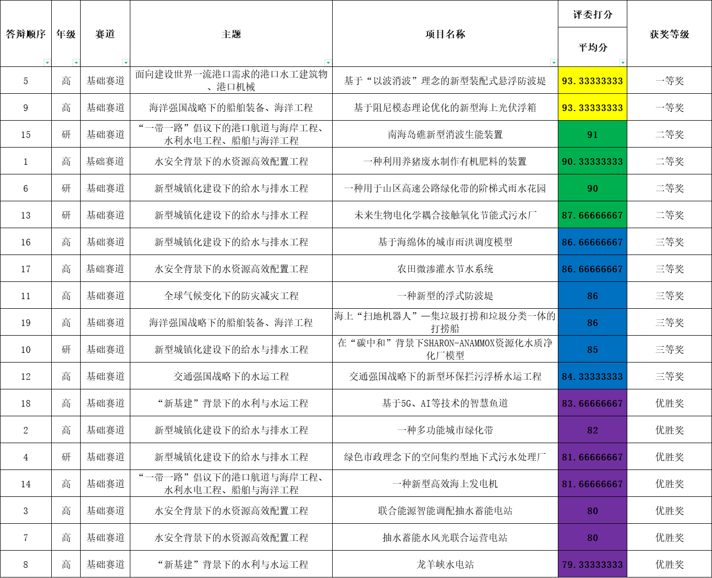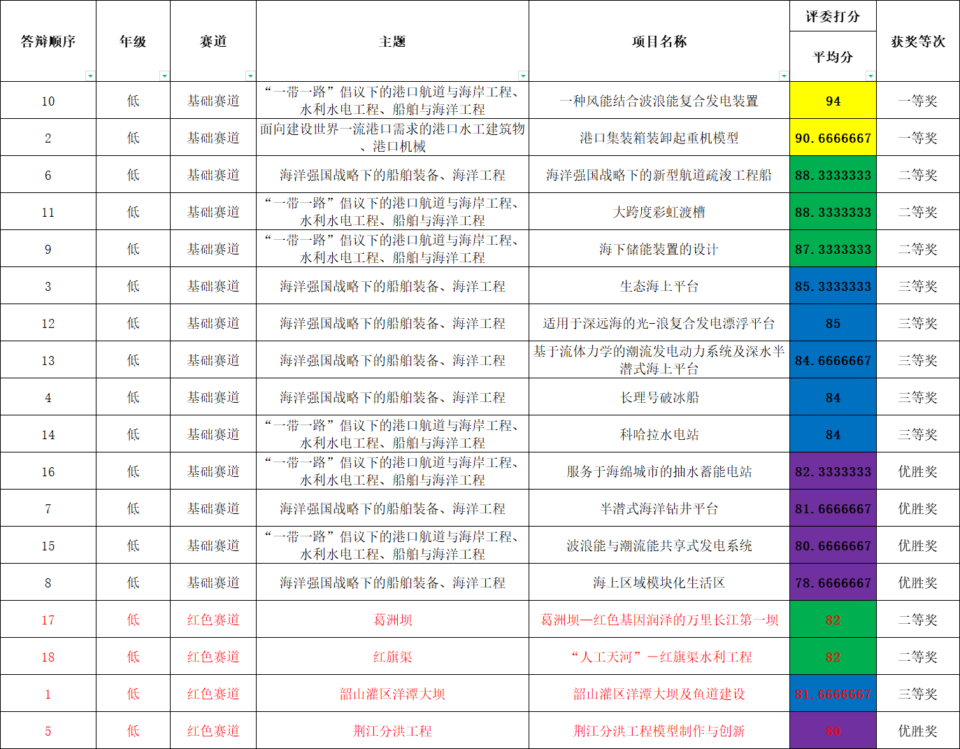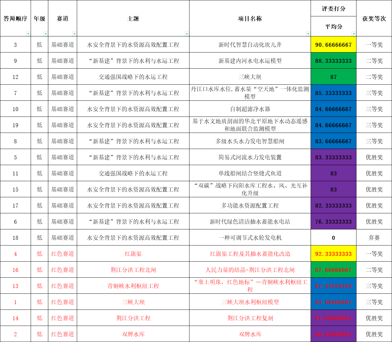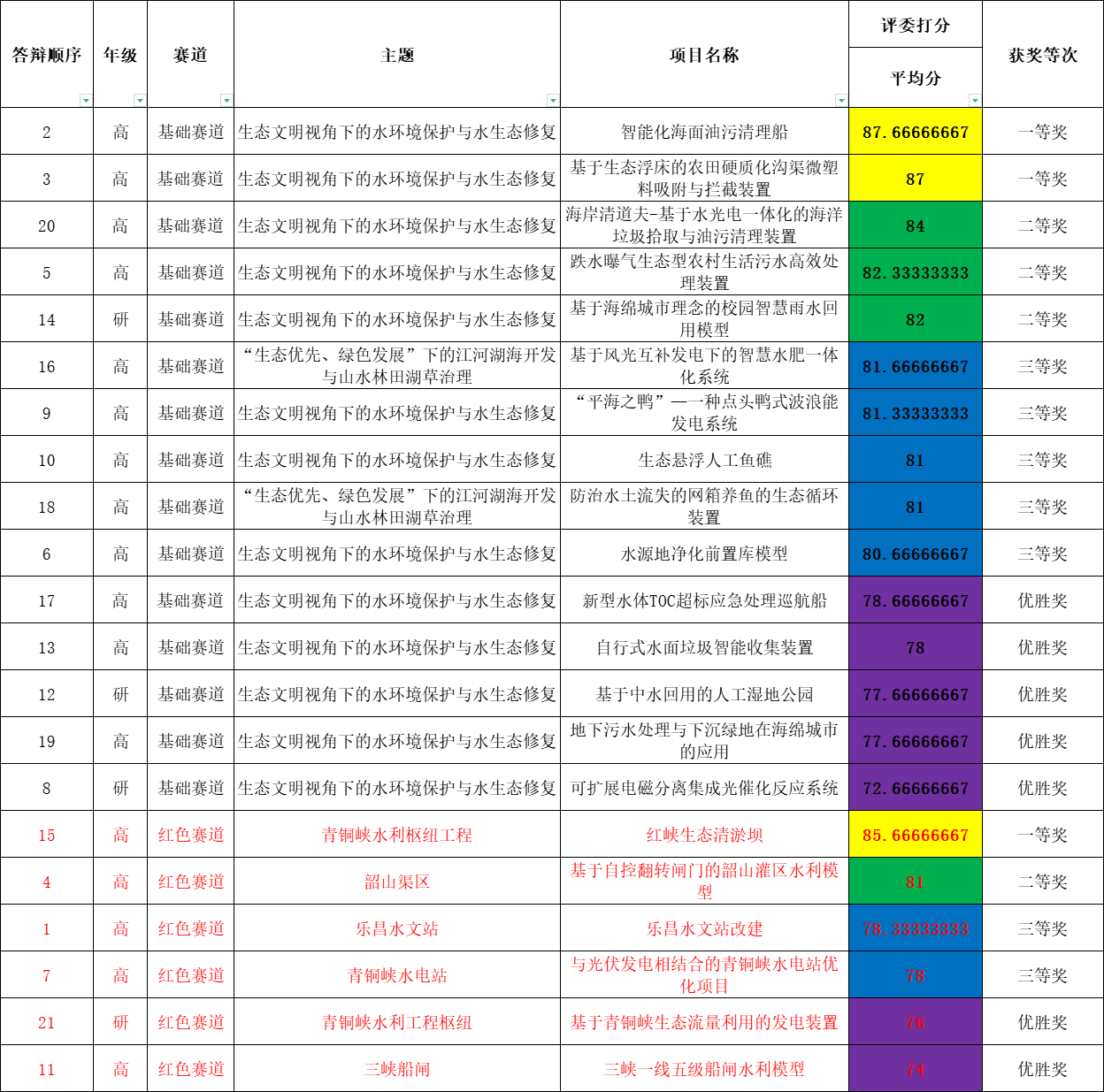 根据学校疫情防控形势,大赛组委会对赛制等要求进行了相应的调整,经过团队申报、评委筛选、线上初赛答辩等环节,高年级组基础赛道共评选出一等奖4组,二等奖7组,三等奖11组,优胜奖12组;高年级组红色赛道共评选出一等奖1组,二等奖1组,三等奖2组,优胜奖2组。低年级组基础赛道共评选出一等奖7组,二等奖12组,三等奖21组,优胜奖22组;低年级组红色赛道共评选出一等奖1组,二等奖3组,三等奖3组,优胜奖3组。其中,所有获评一等奖的参赛队伍参加决赛答辩(答辩时间另行通知)。永利集团88304官网第三届“大禹杯”水利模型创新设计大赛初赛结果如下: