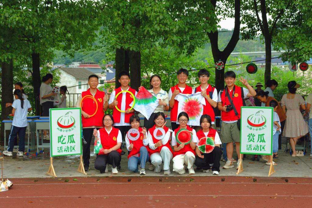 团队成员化身最美志愿者参与第三届“双塘小学西瓜丰收节”,协助完成西瓜采摘搬运的前期准备工作,还全程负责现场以西瓜为主题,圈圈套西瓜、西瓜接力比赛、吃西瓜比赛等互动性极强的游戏环节。欢笑声此起彼伏,让在场的所有人沉浸在欢乐的海洋里。“你们这个队伍真是不错!”团队成员耐心细致地组织引导、踏实肯干的积极表现获得了学校老师一致赞扬。
