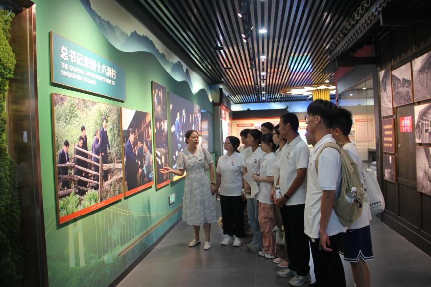 前往花垣县十八洞村,探寻中国“精准扶贫”首倡地脱贫致富的“密码”,在精准扶贫展厅内,成员们重温总书记在十八洞村实地考察的影像,通过一幅幅照片、一组组数据了解十八洞村顺利拔穷根、摘贫帽,成为全国精准脱贫样板的历程。在馆内的“亲历者说”环节,成员们观看了石拔三奶奶回忆总书记到访时的影像资料,随后实地来到石奶奶家中,聆听十八洞村的幸福故事,感受古老苗寨的华丽蝶变。成员们还实地感受了苗绣、蜡染等传统手工艺。