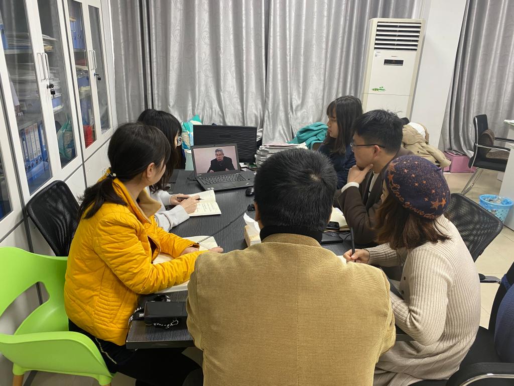 12月2日,水利工程学院学工办全体人员在工科三号楼B437集体学习全国高校心理危机预防干预网路培训班直播内容,学院党委副书记吴振华及全体辅导员参加此次培训学习。