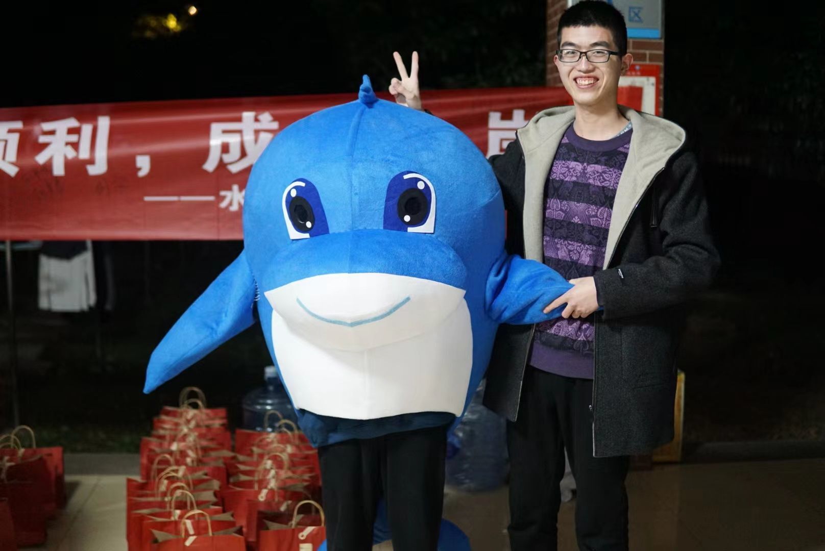活动还包括写祝福明信片、与海豚玩偶拥抱解压、在横幅上签名留言等。愿所有考研人旗开得胜,一战成硕!”、“坚持到底,胜利一定是属于你们的”等爱心寄语充满同学们对考研学子的祝福,字字触动人心。