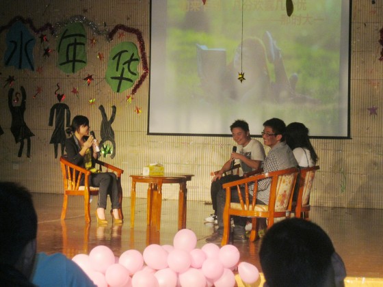 在大家的欢呼声中,主持人宣布晚会的开始。整场晚会有三段心理访谈组成,期间穿插着由同学自导自演的《宫锁心玉水利版》,幽默而生动的表演一度将晚会带向高潮。在每段心理访谈之前便是进行访谈同学拍摄的VCR,每个人都讲出了自己近期的压力,由叶正芳老师现场当面解答。分别以“学习”、“爱情”、“就业”为主题进行访谈。