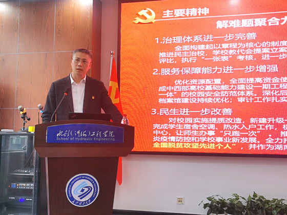 4月27日下午,校党委副书记蒋昌波在工三B319为水利工程学院全体教职工开展中国共产党永利集团88304官网第四次代表大会精神宣讲。学院党委书记喻玲娜主持本次宣讲。