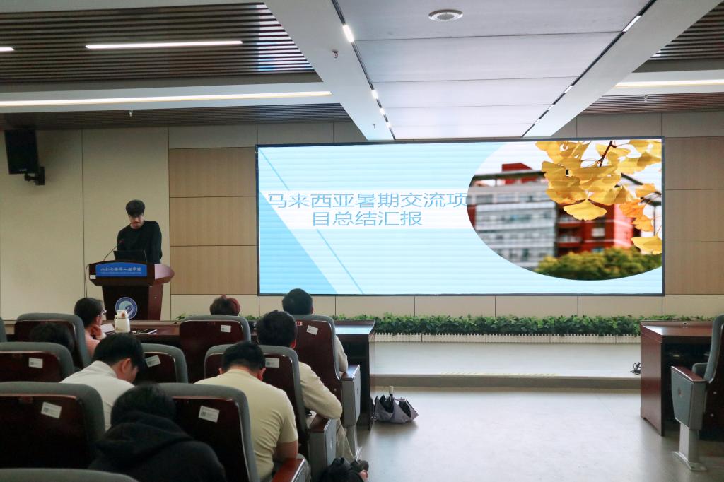 赴马来西亚沙巴大学交流的张泽作为团队代表分享了为期三个月的研学实践经历。他重点介绍了沙巴大学在水利领域的学科特色,交流了研学团在交通工程、土壤稳定与地基处理等相关课程的学习心得,并介绍了前往MOYOG水处理厂、水库大坝等实地参访的实践收获。结合自身在多元文化环境中的生活体验,张泽分享了提升跨文化沟通能力对于个人成长的重要作用,并就项目申请流程与文化适应技巧,为同学们提供了实用建议。