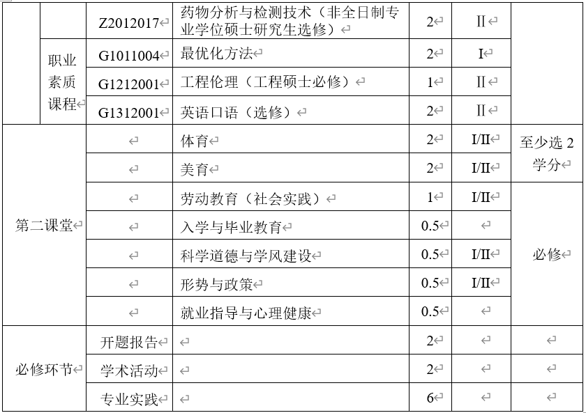 注:学生至少获得第二课堂5学分方可毕业。第二课堂学分认定见《永利集团88304官网研究生第二课堂学分管理办法》。其中,体育和美育类课程一共2学分,劳动教育(含社会实践)1学分,科学道德与学风建设0.5学分,形势与政策0.5学分,入学与毕业教育0.5学分,就业指导与心理健康教育0.5学分。