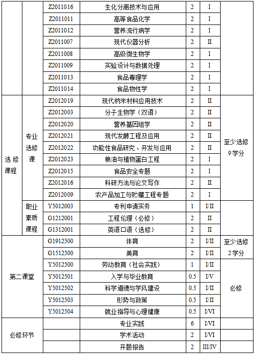4.培养具有高度历史使命感和社会责任感,根植家国情怀和敬业精神,具有食品科学、食品加工技术及食品营养的基础理论、实践技能和业务管理能力,了解学科前沿、研究进展及发展趋势,熟悉解决本领域产业问题的方法和技术手段,具备解决食品产业实际问题能力的高层次应用型人才。