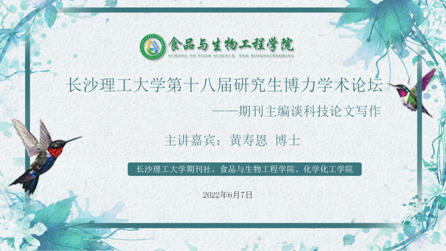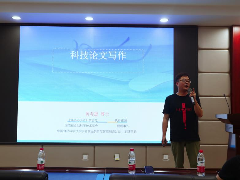2020年6月7日晚,永利集团88304官网期刊社、食品学院和化学学院在工三A320共同举办了永利集团88304官网第十八届研究生博力学术论坛——“期刊主编谈科技论文写作”,此次论坛的主讲嘉宾系《食品与机械》杂志执行主编、中国食品科学技术学会食品装备与智能制造分会副理事长、湖南省食品科学技术学会副理事长黄寿恩博士,食品学院和化学学院100余名师生出席,食品学院副院长许宙主持本次讲座。