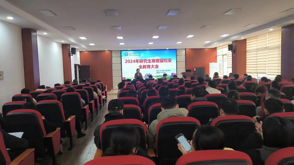 1月9日中午,为了增强留校研究生的安全防范意识,提高自我保护能力,消除安全隐患,食品学院在工三A320召开了2024年研究生寒假留校安全教育大会。会议由研究生辅导员胡佳佳主持。