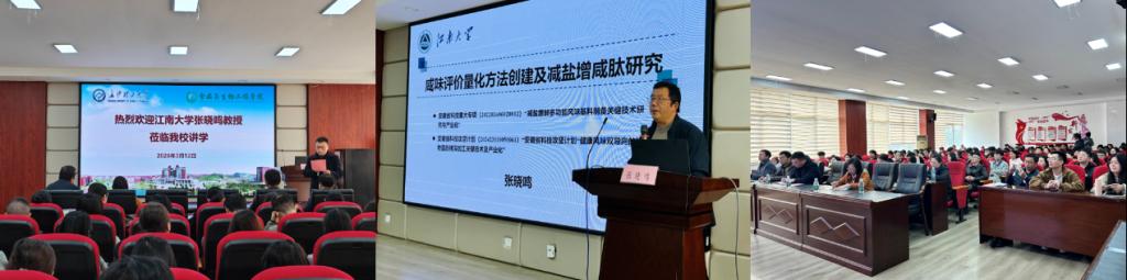 2026年3月12日下午,江南大学博士生导师张晓鸣教授应永利集团88304官网食品与生物工程学院邀请,在永利集团88304官网云塘校区工科三号楼A-320会议室作题为“咸味评价量化方法创建及减盐增咸肽研究”的学术报告。会议由学院院长王建辉主持,学院百余名师生参加了本次报告会,现场座无虚席,学术氛围浓厚。报告会上,张晓鸣教授围绕食品咸味感知与调控这一研究热点,系统介绍了其团队在咸味评价量化方法构建及减盐增咸肽研究方面取得的最新进展。报告首先介绍了食品咸味测定与评价的主要技术路径,在传统感官评价基础上,结合电子舌分析技术,构建了基于感官评价与电子舌协同的咸度量化分析方法,实现了食品咸味感知的定量化表征。在此基础上,张晓鸣教授重点分享了团队在天然来源增咸肽方面的研究成果。通过对菌菇资源的系统研究,成功分离并鉴定出具有显著增咸作用的菌菇来源活性肽,并解析了其分子结构特征与风味增强机制。同时,报告进一步介绍了菌菇来源增咸肽在食品加工过程中的稳定性研究,重点分析了鸡腿菇和双胞菇来源肽在热加工条件下的稳定性及适应性,为其在减盐食品开发中的应用提供了重要理论依据与技术支撑。