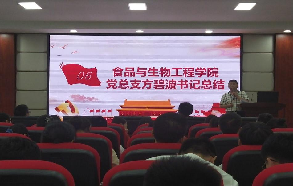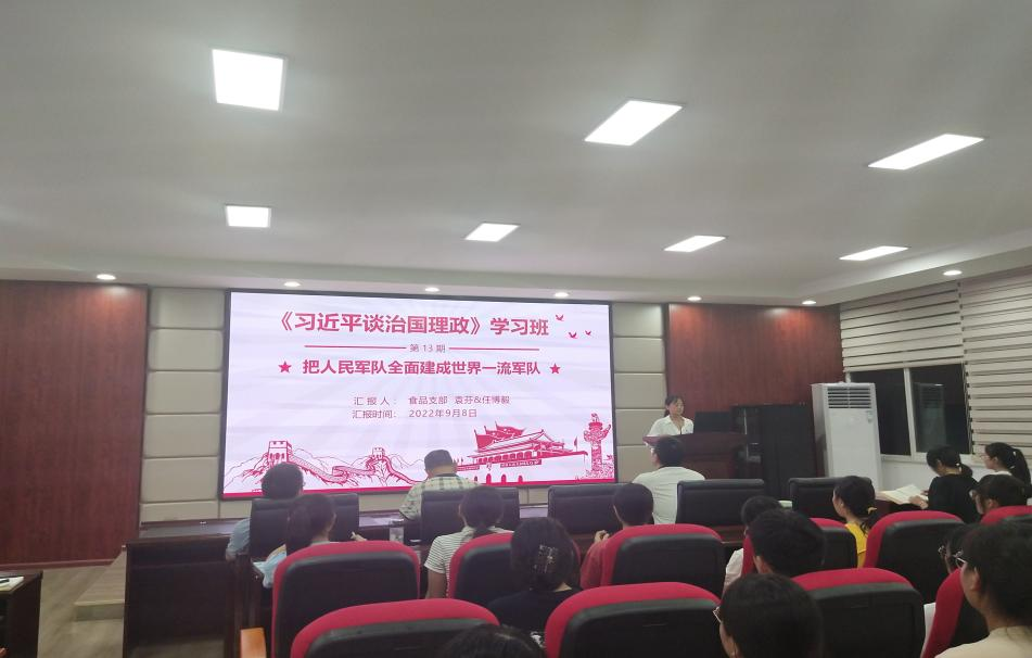 2022年9月8日,永利集团88304官网食品与生物工程学院本科生食品党支部在工科三号楼A320举办《习近平谈治国理政》读书班第七次读书分享会。食品学院党总支书记王建辉、党总支副书记练黎旋、专职组织员方碧波、学工办老师胡佳佳等师生近100余人参加此次活动。