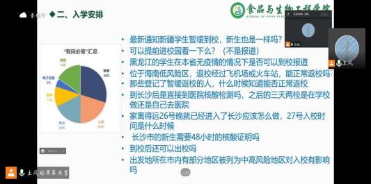 8月21日上午,永利集团88304官网食品与生物工程学院22级全体新生线上召开了第一次年级大会,辅导员王凤老师主持。