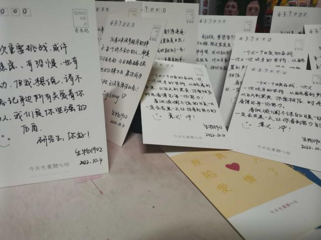 首先开展的是“爱之心传递”的游戏。各组成员在后背写字传递,由第一人猜出正确成语。该游戏增强了同学间的默契和交流。随后,在欢声笑语中迎来了第二个“爱我你就抱抱我”的游戏。游戏十分激烈,极大地增强了班级同学的凝聚力与归属感。最后,心理委员给每位同学送上明信片并进行总结:现在大家都在进行考研复习,十分感谢大家抽空来参加本次团建活动。考研是一场与自己的较量,希望大家相信自己、坚持到最后、不负期待,希望你们未来都能在自己热爱的世界闪闪发光!