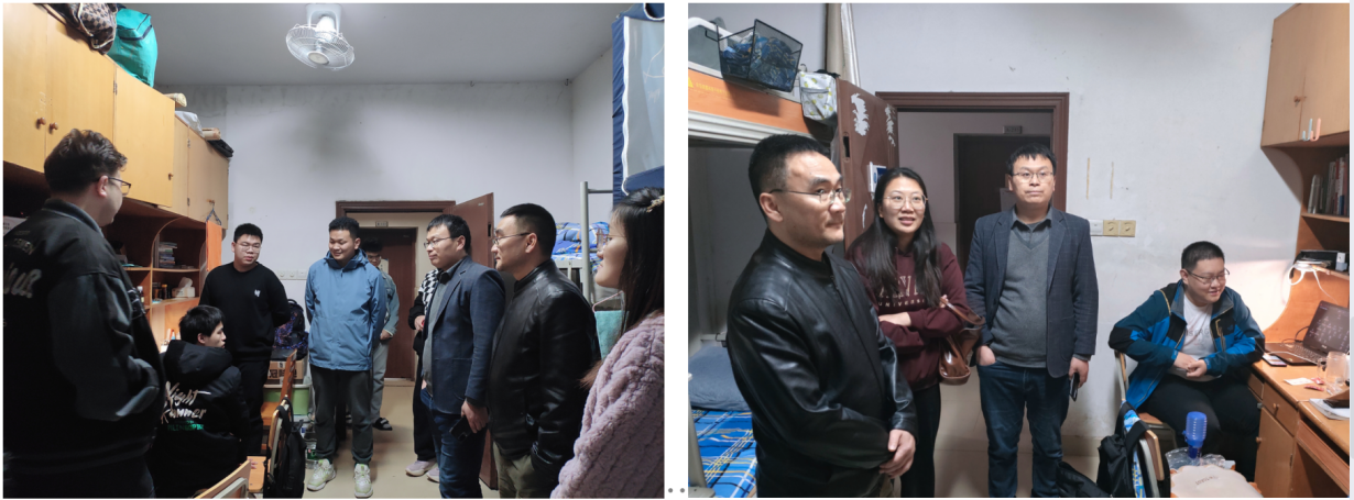 2月21日晚,学院党总支书记王建辉带领全体学院领导、辅导员走访学生宿舍,实地了解学生返校后的学习生活情况,第一时间为学生们送上学院关怀。每到一间宿舍,领导老师都会亲切地与学生共话新学期新计划,引导学生端正学习态度;针对毕业生了解其考研就业情况,引导学生树立正确价值观念,鼓励学生敢于追梦勇于追梦,养成良好学习生活习惯;叮嘱学生提高安全意识,防范“电信诈骗”等安全教育,期望同学们尽快“收心”调整状态,以优良的精神风貌投入到新学期的学习生活。