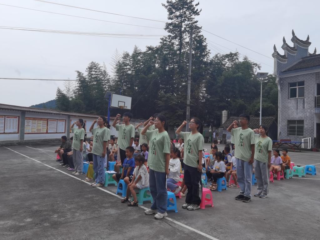 带队老师食品学院辅导员王凤对乡镇全体领导的支持与信任表达了诚挚的感谢,同时希望支教队员们继续发扬不怕吃苦、勇于奋斗的精神,以更加积极的态度和专业的知识,全力以赴,为孩子们提供更加优质的教育服务。仪式最后,在支教队长罗超亮的带领下,15位支教队员庄严宣誓,表示将以最饱满的热情和最赤诚的心意,在接下来21天的时间里,全身心投入到支教的志愿活动中去。