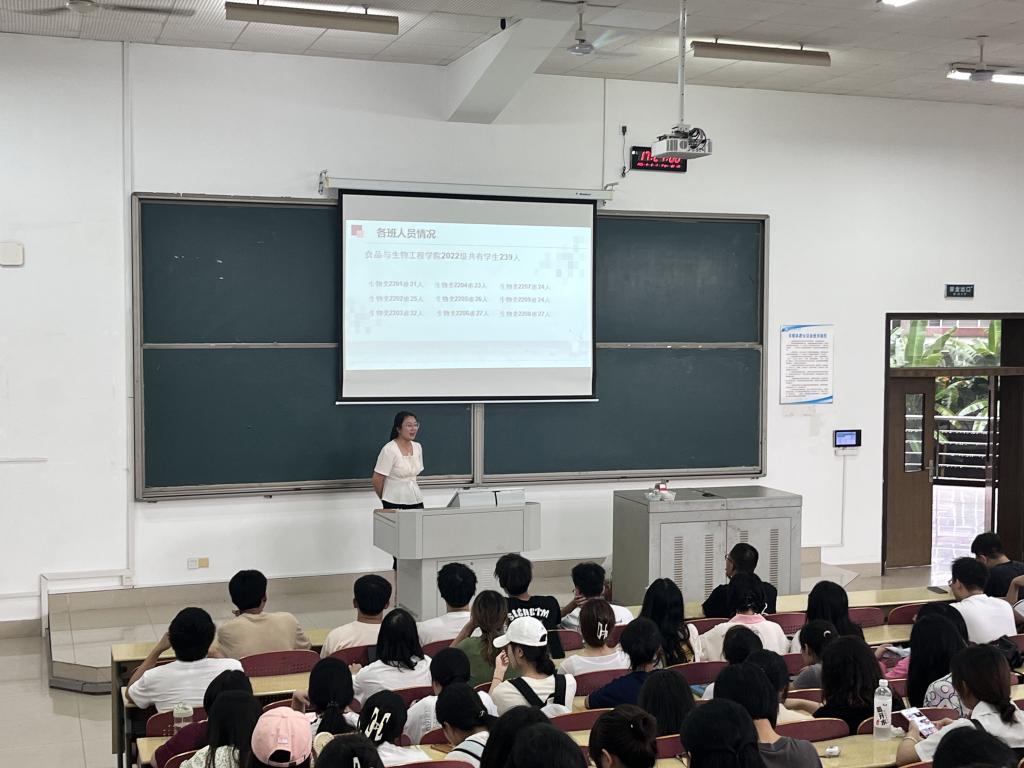 随着秋风的轻轻吹拂,新的学期如约而至。为进一步落实新学期的各项工作安排,了解学生新学期思想动态,为本学期工作的顺利开展奠定基础,食品学院2022级于9月5日下午在综合教学楼B202召开新学期年级大会。会议由年级辅导员王凤组织开展。