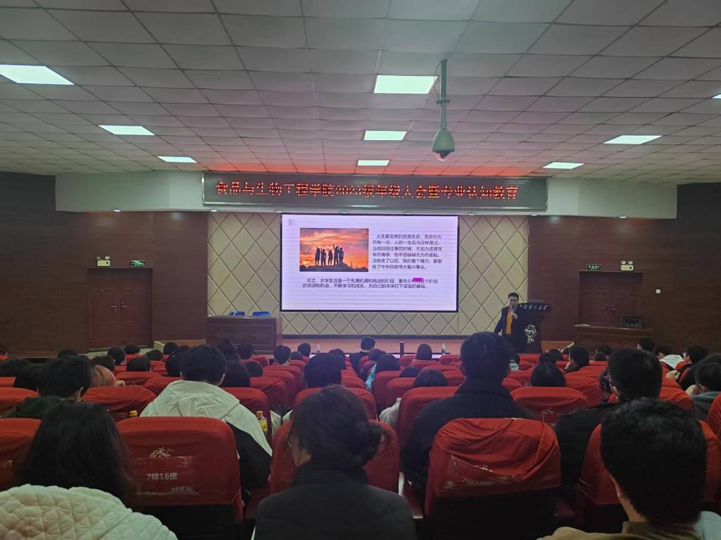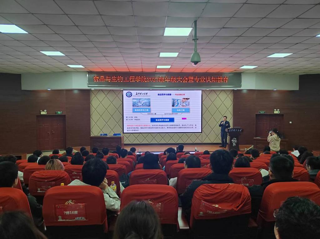 会议伊始,王建辉院长从学院概况、专业介绍、人才培养、科研前景等四个方面为同学们详细介绍了相关情况。并以预制菜产业发展情况、目前存在的问题以及如何通过食品、生物领域科研工作助力产业发展为例细致讲解了相关专业发展前景,同时寄语全体2023级学生能够深刻理解所学专业对于国计民生的重要性,潜心专业学习,锤炼科研精神。