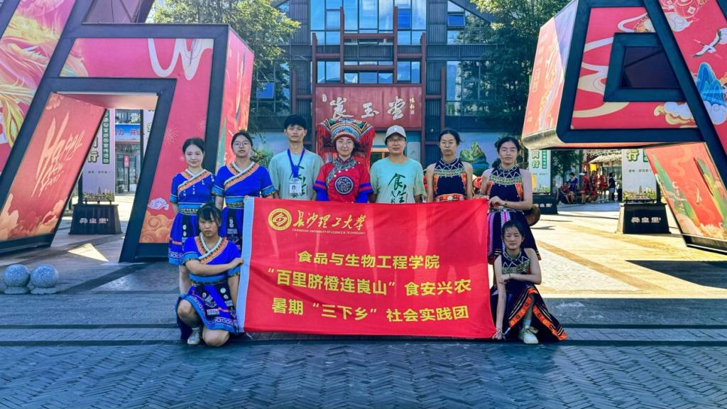 为弘扬瑶族传统文化,传承瑶族非物质文化遗产,7月9日,永利集团88304官网食品与生物工程学院“百里脐橙连崀山”——食安兴农暑期“三下乡”社会实践乡村振兴团(以下简称“食安兴农团”)来到双峰县第一中学,组织开展花瑶“拦门酒”--瑶族文化宣传活动。