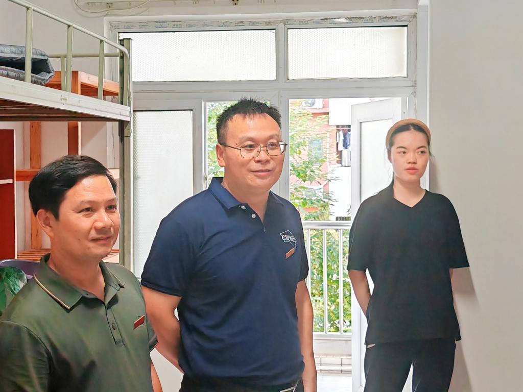 领导老师们与新生亲切交谈,从日常生活、饮食习惯、宿舍环境等方面详细询问他们对新环境的适应情况,例如住宿是否习惯、舍友间相处是否融洽、食堂饭菜是否合口味等。领导老师们用心倾听新生的问题和困惑,给予了详细的解答和建议。