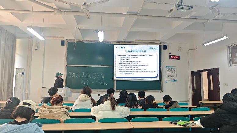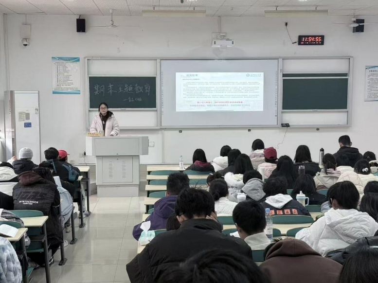 各班级精心组织班会,认真落实要求。在考风考纪教育环节,通过集体学习规章制度与典型案例剖析等方式开展警示教育,并组织全体同学现场签署《诚信考试承诺书》。安全教育则全面覆盖消防、反诈、网络、交通及离校等重点领域,并结合校园交通新规与真实数据进行强调,引导学生共同维护校园安全。