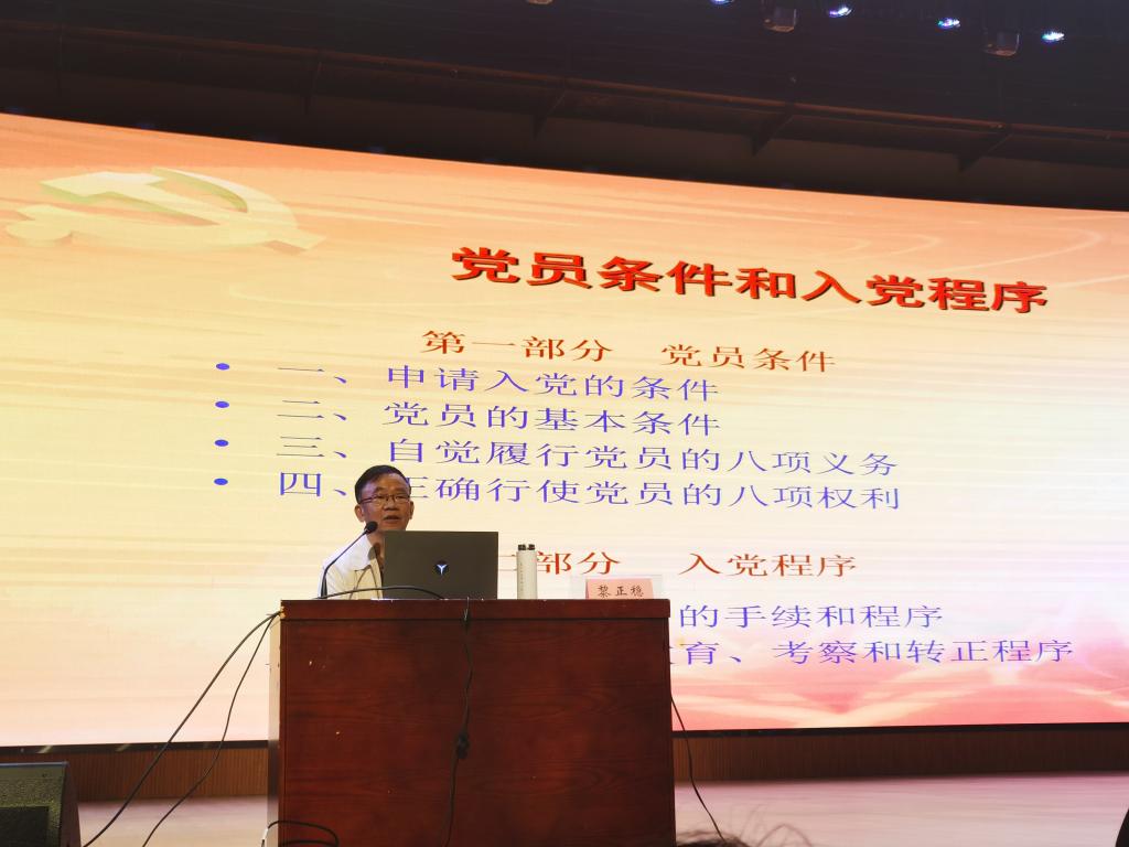 4月15日晚,食品学院于金盆岭校区五教大礼堂开展《党员条件和入党程序》专题党课。本次党课由永利集团88304官网原副校长黎正稳教授主讲,本期积极分子培训班全体学员参加。