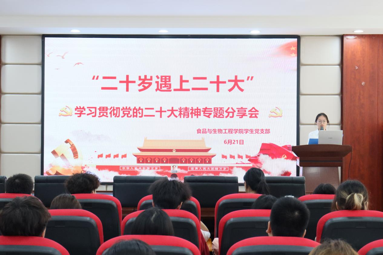 6月21日中午,食品学院学生党支部在工三A320开展了“二十岁遇上二十大”党的二十大精神专题分享会第三季第六期“‘学千万工程’,促乡村蝶变”。学生代表100余人参与本次活动。