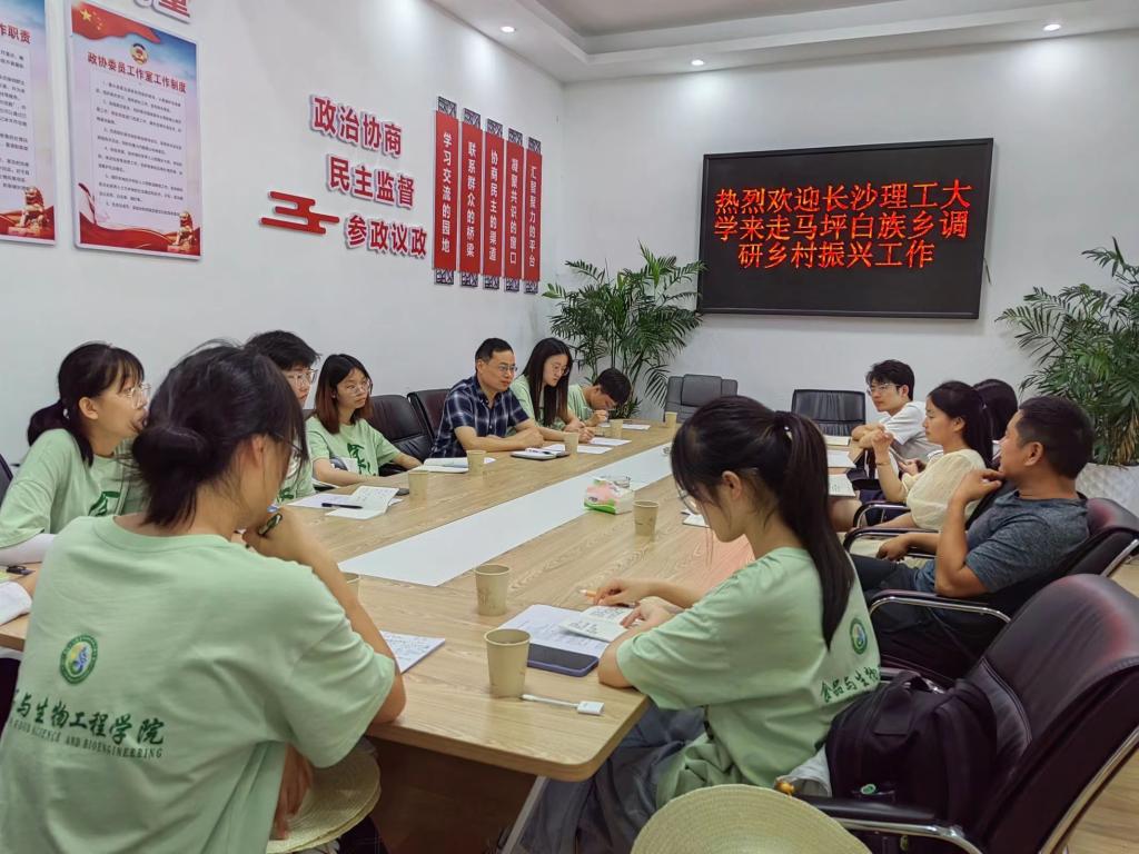 为了解走马坪村乡村产业振兴情况,寻找解决办法的途径,推动当地乡村产业的持续发展,2023年7月7日,在指导老师陈永发和熊英的带领下,食品学院助力乡村振兴社会实践调研团走进了乡政府,围绕近几日实地调研、访谈发现的情况和问题,同走马坪白族自治乡乡长、党委委员等进行了深入的交流和讨论。