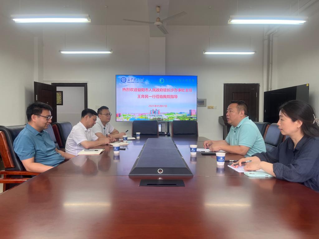 5月7日上午,益阳市政府驻长沙办事处主任王育民一行到访我院,与学院党委书记高顺利、院长王建辉、副院长方芳等座谈交流,共商校地合作发展新路径,并实地参观学院公共实验平台。