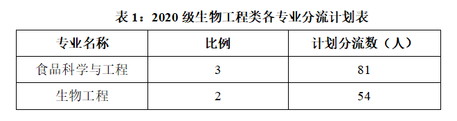 为进一步整合教学资源,发挥专业交叉融合优势,提高人才培养质量。学院将食品科学与工程和生物工程2个本科专业实行“生物工程类”大类招生,根据学院新修订的各专业培养方案,2020级大类招生本科生将于2022年秋季学期开始进行分专业培养。为公平、公正、公开地做好专业分流,特制定本方案。