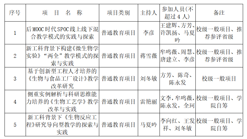 食品与生物工程学院2022年教研教改项目立项及推荐参评省级项目评审结果公示
