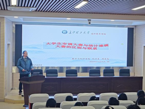 12月13日晚,数学与统计学院洪圣光老师在云塘校区理科楼A200会议室,为永利官网学生开展了题为“大学生市调大赛与统计建模大赛的区别与联系”的通识教育讲座。
