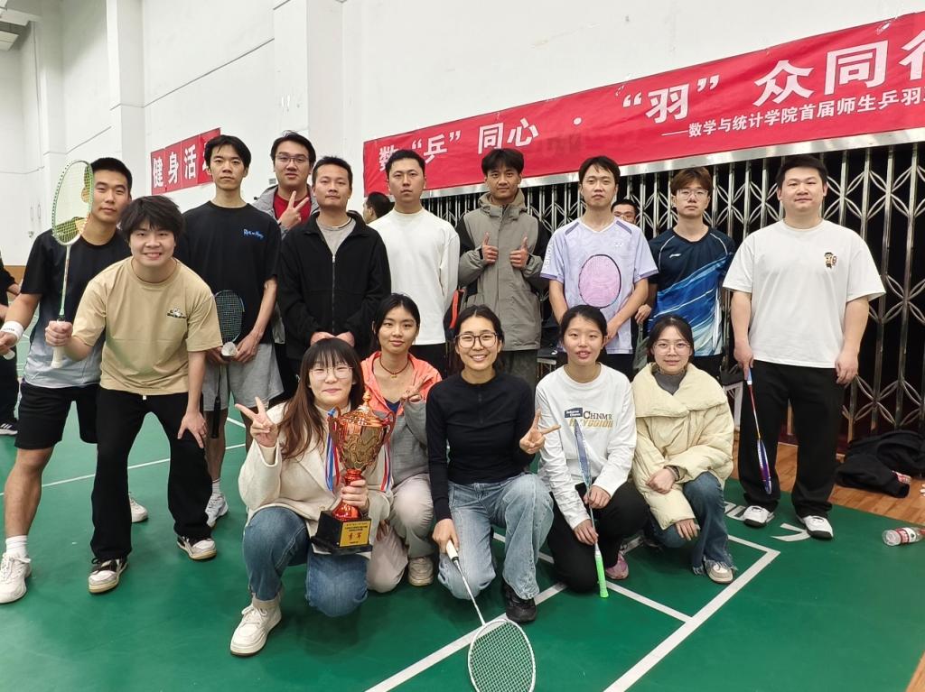 11月25日、27日晚,数学与统计学院首届师生“乒羽联赛”在永利集团88304官网云塘校区体育馆乒羽中心顺利举行并圆满落幕。本次赛事由数学与统计学院工会主办,数学与统计学院教职工羽毛球队、教职工乒乓球队、学生羽毛球队、学生乒乓球队协办,院党委委员、纪委书记仝青山主持,共吸引70余名师生组成三支代表队参与角逐。