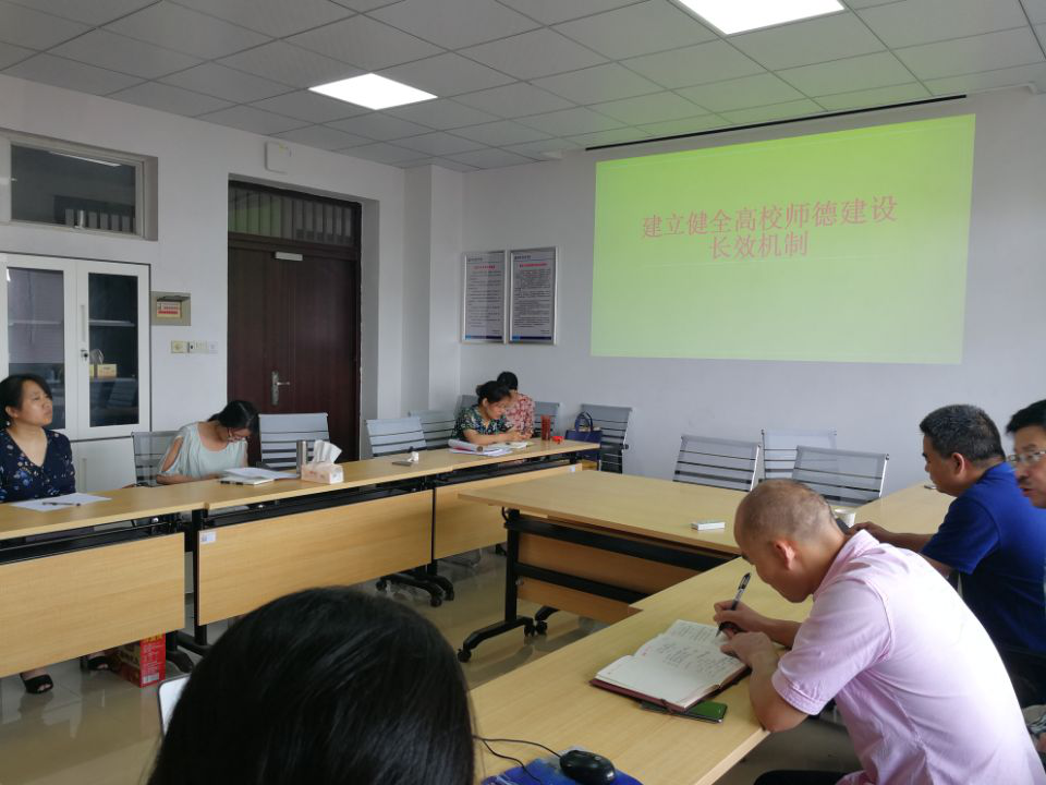 会上,游主任带领大家共同学习了教育部规定的有关师德师风建设的“十条红线””与永利集团88304官网课堂教学行为“十要”、”十杜绝”等相关文件,要求大家恪守高校教师职业道德规范,杜绝言行失范,自觉遵守教学纪律,紧跟学科前沿,开展课堂革命,打造“金课“,淘汰“水课”。
