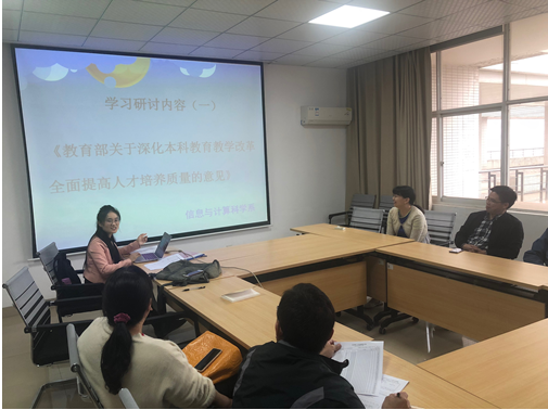在“立德树人担使命,教育为民履职责”主题教育背景下,10月15日下午,信息与计算科学系在理科楼A502组织全系老师集中学习了《教育部关于深化本科教育教学改革全面提高人才培养质量的意见》。会议由支部书记兼系副主任李姣主持。